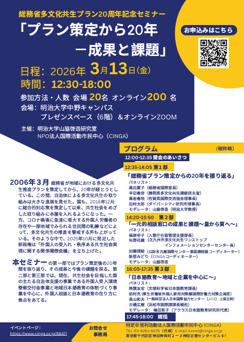 ◆主催:明治大学山脇啓造研究室、NPO法人国際活動市民中心(CINGA)